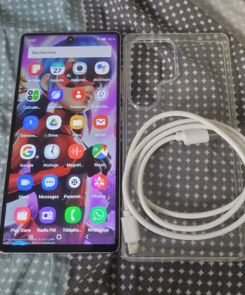Contenu du pack : 1x Smartphone, 1x Adaptateur de chargeur, 1x Câble de charge, 1x Écouteurs, 1x Manuel d'utilisation, 1x Coque de téléphone, 1x Film de protection